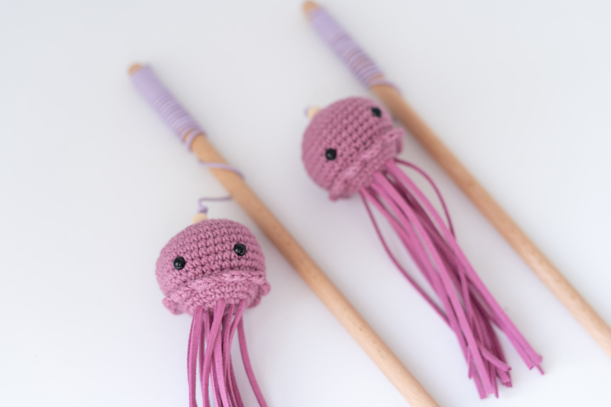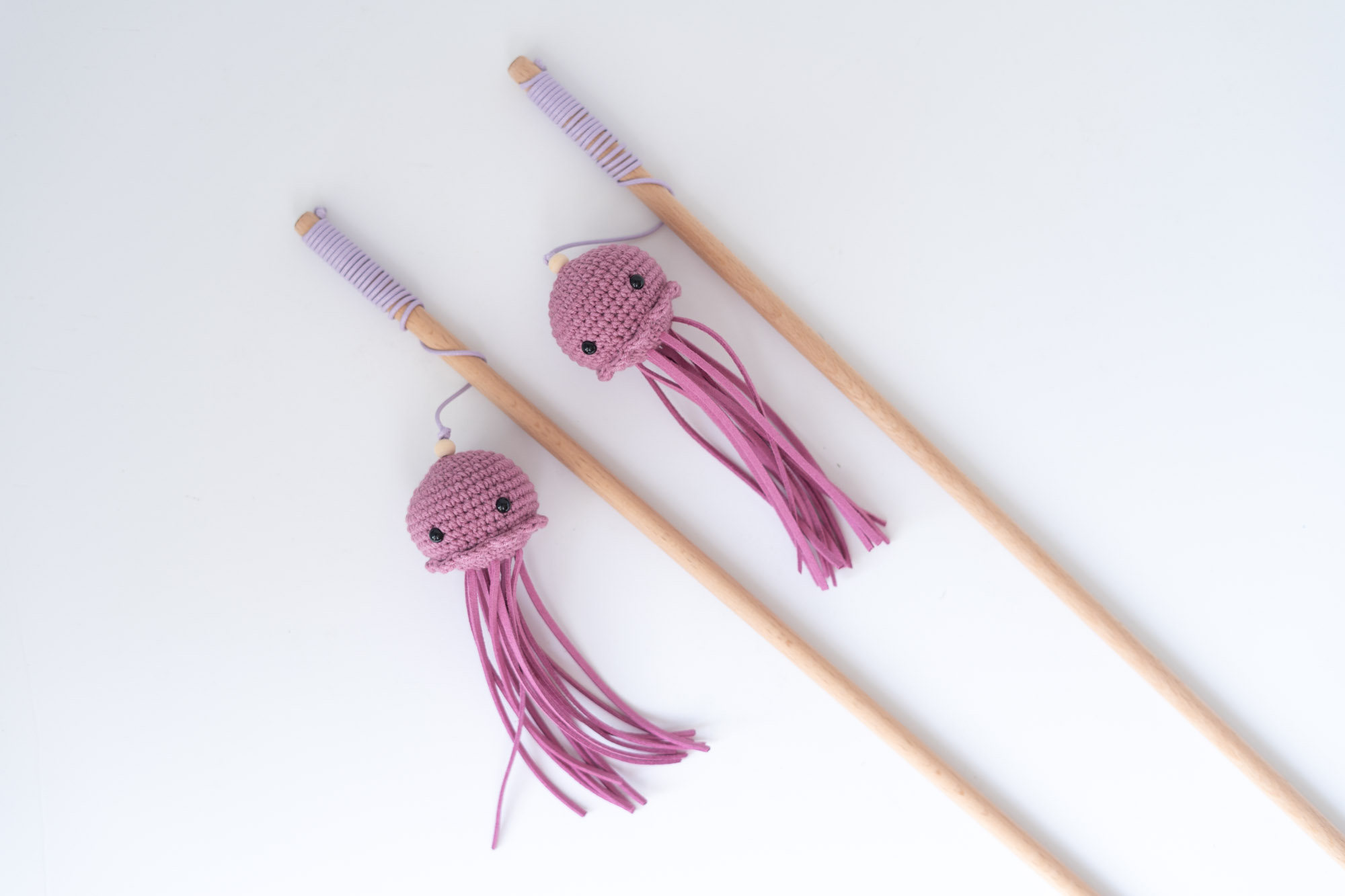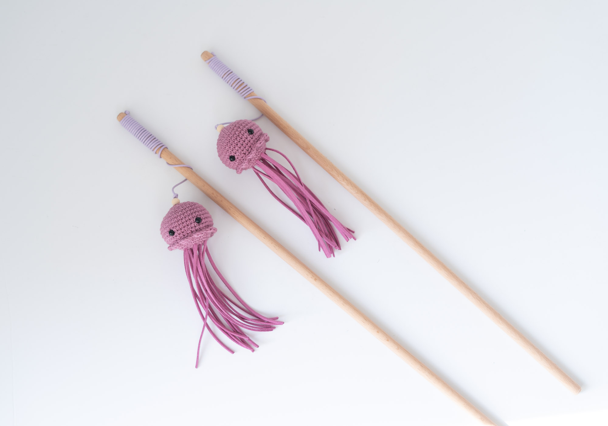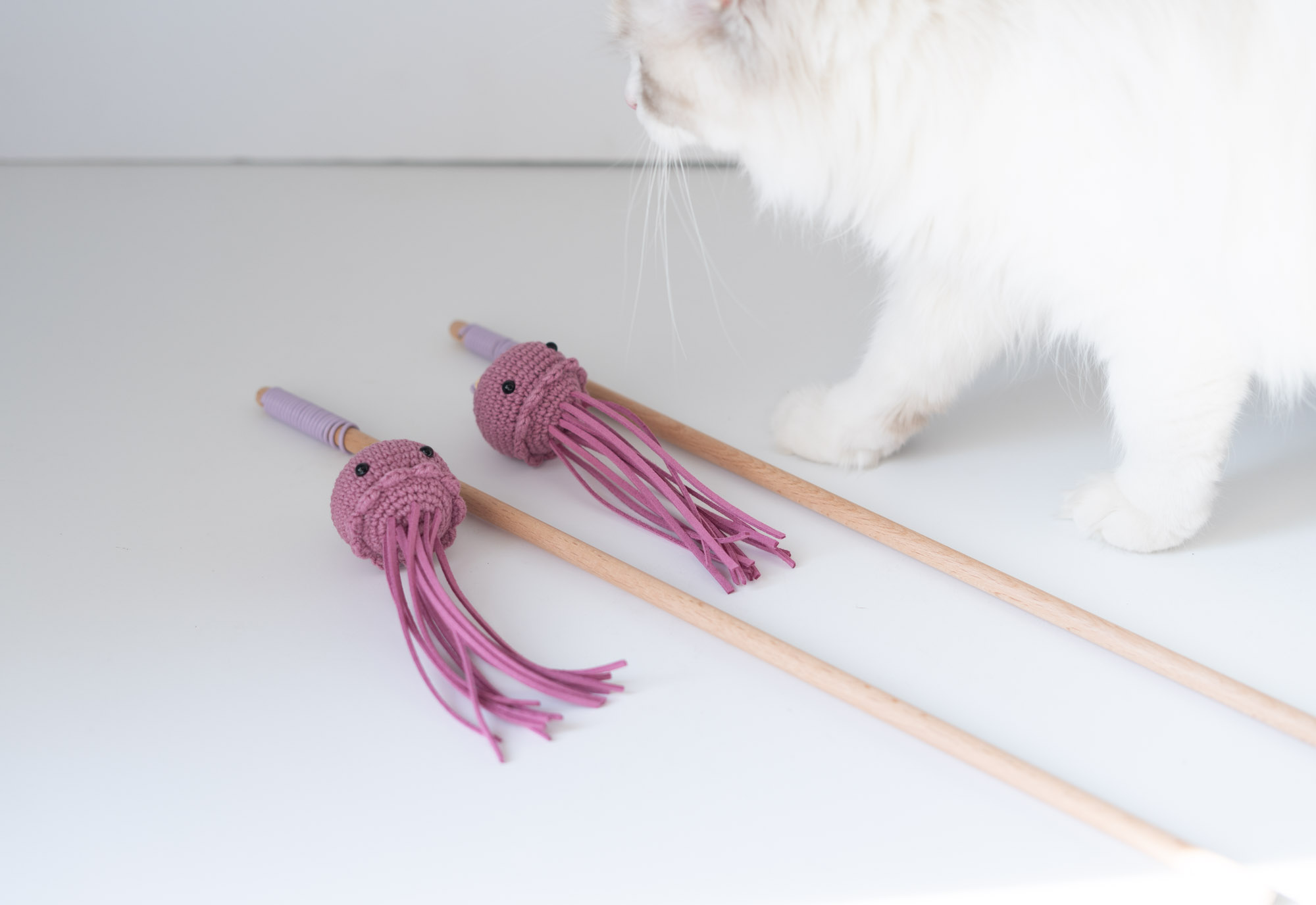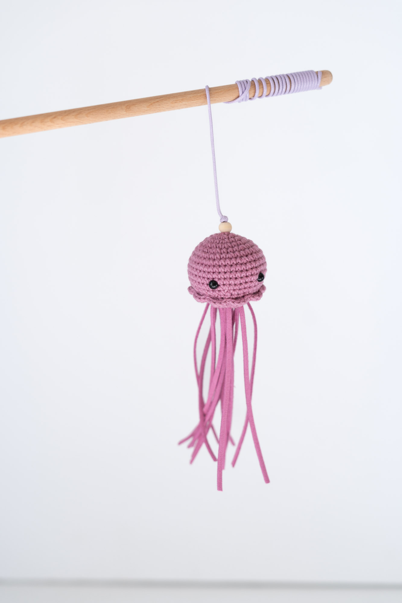 Wędka dla kota – meduza z odnóżami z rzemyka.