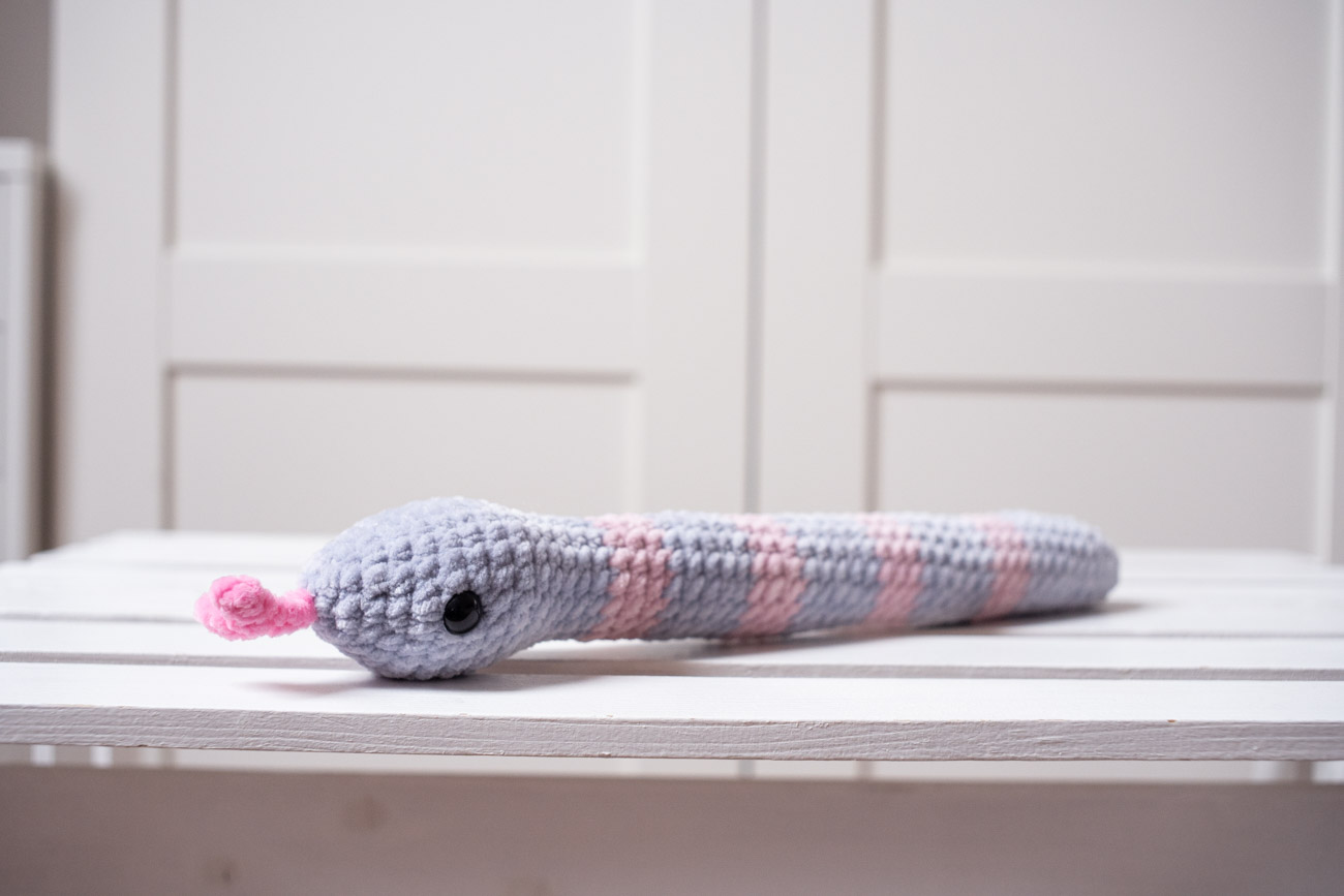 Duży, wypełniony kocimiętką i walerianą wąż z grzechotką.